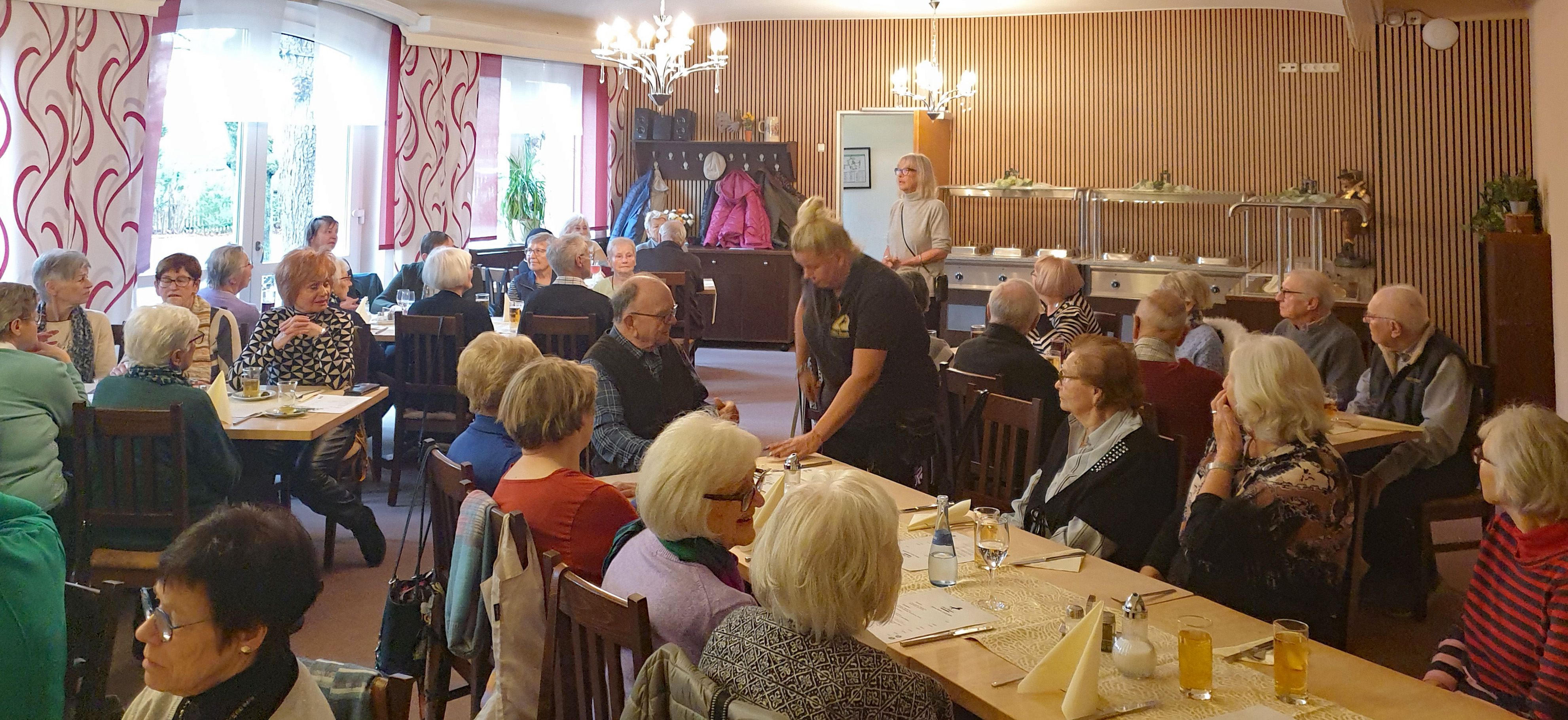 Der Seniorenbeirat lädt gerne regelmäßig ein zum gemeinsamen Mittagessen in unseren Rothenburger Gaststätten, inzwischen eine gut besuchte und beliebte Tradition. Das Treffen findet meist 14-tägig an Dienstagen zur Mittagszeit statt, in verschiedenen Lokalitäten, aber wenn immer möglich mit Rollstuhl-geeignetem Zugang. Zur Planung ist eine Anmeldung bis Sonntag Mittag vorher erforderlich. Termin und Uhrzeit finden Sie unter "Termine". Daneben der erste Mittagstisch vom Februar 2023 im Restaurant "Taj Mahal". |