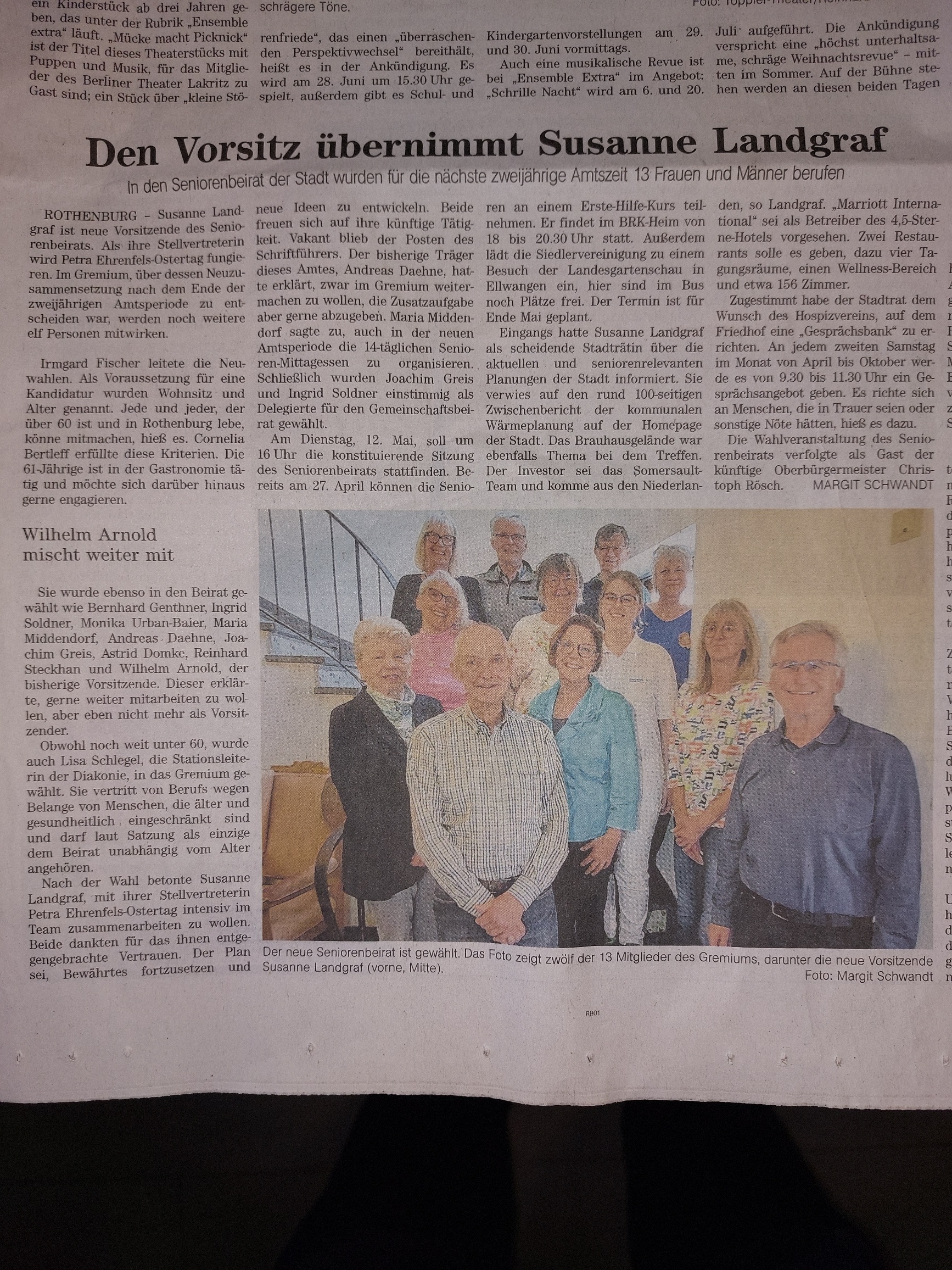 FA vom 17.04.2026 Den Vorsitz übernimmt Susanne Landgraf --> In den Seniorenbeirat der Stadt wurden für die nächste zweijährige Amtszeit 13 Männer und Frauen berufen