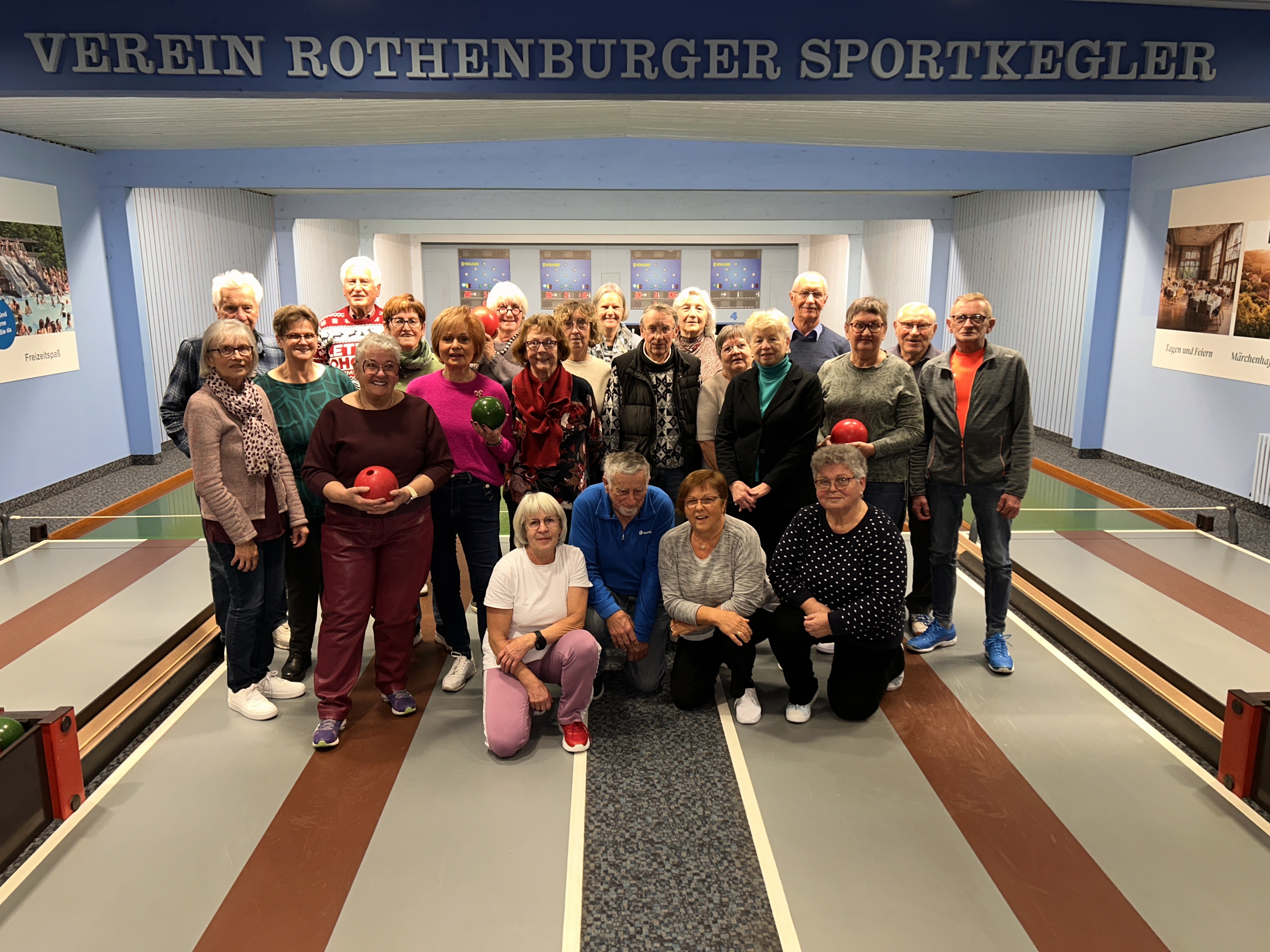 Wollen Sie gerne mit anderen Gleichgesinnten zusammen professionell Kegeln? Etwa alle 2 Wochen treffen sich Kegel Freunde auf der Kegelbahn neben dem Restaurant vom Hallenbad. Das beginnt um 14:30 Uhr und dauert circa 2 Stunden. Sie müssen sich dazu nicht anmelden, einfach kommen, auch Anfänger sind willkommen. Hallensportschuhe mit weißen oder hellen Sohlen sind erforderlich. Das Kegeln ist nicht ganz kostenlos, weil wir die Bahnen vom Restaurant reservieren müssen, die Kosten werden unter den Teilnehmern umgelegt, circa 5 Euro für die 2 Stunden. Wann? Siehe unter "Termine"! |